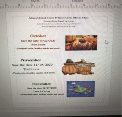 With remote learning a common reality this year for CF students and their  families,  Maureen thought some safe, socially distant activities would be fun for kids via Zoom. The Foundation will fund supplies and necessary mailing costs to make sure families have what they need to participate in this fun program.
